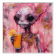 A pink alien enjoys a nice glass of orange juice mixed media ai generated painting