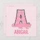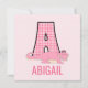 Pink Alligator Letter A Kids Birthday Party Invitation