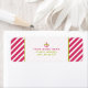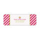 An address label featuring a small illustration of a pink anchor covered with a green banner. Background is diagonal pink stripes. Personalize the pink and green text with your name and address.