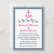 Pink Anchor Nautical Navy Blue Stripe Wedding Invitation