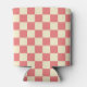 Pink and Beige Checkerboard Can Cooler