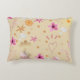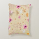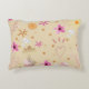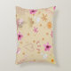 Custom-designed throw pillow with pink and beige colors and whimsical flowers, hearts and stars design. Perfect accent pillow. Made in the U.S.A.