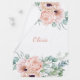 Personalize this beautifully feminine baby blanket with baby's name. This sweet design features bouquet borders of watercolor poppies, roses, eucalyptus and trailing greenery in pastel beige, pink, green and blue-green. It makes a lovely choice for baby's nursery.