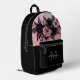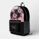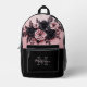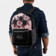 This unique modern luxury backpack design for her features blush pink and black 3D roses and a custom name and monogram.