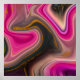 A poster with a groovy looking abstract design. Pink and black colors mix and mingle together in a swirling motion. Sprinkles of faux gold glitter in between the layers.