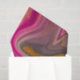 Tissue paper with a groovy looking abstract design. Pink and black colors mix and mingle together in a swirling motion. Sprinkles of faux gold glitter in between the layers.