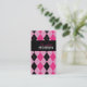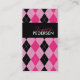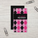Pink and Black Argyle Business Cards