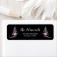 This elegant and chic return address label features a pink and black ribbon Christmas tree with a bauble. The text combines handwritten script and modern sans serif fonts for a classy and sophisticated look. The falling snow, snowflakes and sparkles give a festive and magical touch. This is perfect for Christmas and the holiday season.