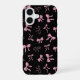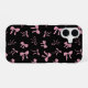 Pink bows with black outlines on a solid black background make up this cute phone case. The design features different types of bows in a trendy pattern.