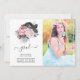 Pink and Black Floral Graduation Photo Announcement