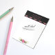 Pretty notepad done in white, with a black header that has a pink flower border and a pink flower, decorating the bottom, of the pad. Personalize the pink custom text, at the top of the pad, for yourself or as a nice gift idea for her.