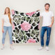 Pink and Black Giraffe Pattern and Flowers Fleece Blanket