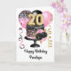Personalized gold, pink and black birthday cake 20th birthday card for her. The front can be easily personalized with her name as well as the inside card message. This beautiful pink and black 20th birthday card would make a wonderful keepsake for her.