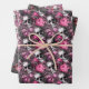 Pink and Black Goth Floral Skulls Wrapping Paper Sheets