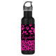 Pink and Black Leopard Print and Paws Personalized Water Bottle