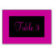 Pink with black rectangle in center of the design with room for a table number. You can customize the background and font color, as well as the font style and size.