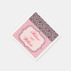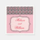This pink and black pattern features a geometric design at the top with a pink background with pink fame and couple's name written therein.