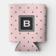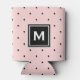 Pink and Black Polka Dots Pattern Monogram Can Cooler