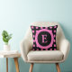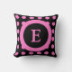 Customize this black and hot pink polka dots cushion, pillow, with an initial, monogram.