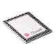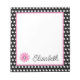 This fun notepad features classic black and white polka dots with a cute pink and black daisy. Personalize with your choice of name or special text.
