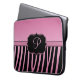 Pink and black zebra stripes with your Monogram. Carry your laptop in style!. Shown on 15" size. Please Note: This is a graphic image. There are no real ribbons, jewels, or gemstones or other embellishments. If you would like this design on another product, please email me at shutterbug600@yahoo.com or click the "Contact" link under the product.
