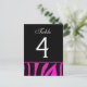 Make sure your guests find their way to their tables with these elegant pink and black zebra print themed wedding table cards. The size is 4.25 x 5.6", and will have a gloss finish. You'll need wedding card holders so the cards will stand upright on your table.