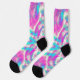 This fun Halloween socks are bright and colorful. The small print is crisp and shows the fun details. The softness of the socks feels nice on my feet and ankles. .