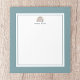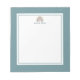 Boho Rainbow Personalized Stationery Notepad - Cute writing paper pad with a blue border, rose gold pink rainbow with navy blue heart, and custom name template. A whimsical, stylish notepad for teachers, daycare caregivers, preschool professionals, etc.