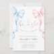 Celebrate the exciting moment of discovering your baby’s gender with this Pink and Blue Bows Gender Reveal Invitation. Featuring elegant watercolor bows in blush pink and baby blue, graceful script typography, and a clean white background, this design combines sweetness and sophistication. Perfect for a “He or She, What Will Baby Be?” themed party. Fully editable text for your event details.