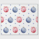 Pink and Blue Christmas Ornaments on White Wrapping Paper