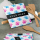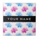Pink and Blue Dahlia, Floral Pattern, Your Name Ceramic Tile