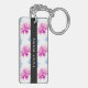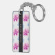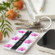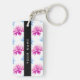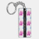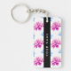 Pink and Blue Dahlia, Floral Pattern, Your Name Keychain
