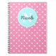 Take notes in this adorable pink polka dot notebook customized with your initial and name.