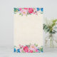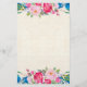 Stationery with a frame of pink and blue wildflowers, posies and pansies with various sprigs and leaves. Colorful and bright. The center is a faux parchment image. Soft and summery.