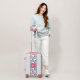 Pink and Blue Geometric Pattern and Monogram Luggage