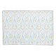 This reversible pillocase features a soft pastel pink and blue pattern a bright white background. On the back is a coordinating striped floral pattern.