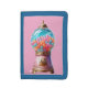 Blue and pink fantasy gumball machine trifold wallet.