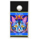 Corn hole bean bag game for cat owners. ai art. Red, orange and blue abstract cat art. generativecontent