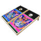 Natural Wood Cornhole Set, Yellow and Purple bags