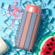 Pink and blue line stripes pattern seltzer can cooler