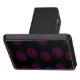 Pink and blue mandala circles on black background pattern.