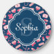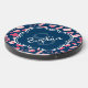 Nurse themed pattern design in pink, white, and navy blue, with a blue and white quatrefoil label featuring a monogram initial letter / name template. A cute, feminine design that is perfect for celebrating a special RN during nurses week.