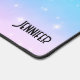 Desk mat with a whimsical background. A pastel pink and blue gradient color scheme. Little white stars scattered around. Whimsical and magical design.