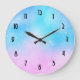 A clock with a whimsical background. A pastel pink and blue gradient color scheme. Little white stars scattered around. Whimsical and magical design.