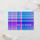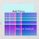 Vivid blue and pink tartan print with mint green thick and thin stripes making up this pastel plaid pattern. There are criss-crossed vertical and horizontal bands of neon pink, neon blue and neon green.