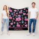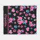 Pink and Blue Poodle Pattern on Black Background Fleece Blanket