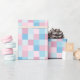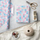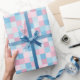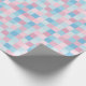 A wrapping paper designed with a square pattern in pink and blue tones.