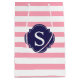 Pink and Blue Stripes Pattern and Monogram Medium Gift Bag