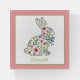 This personalized glass paperweight features an adorable floral spring rabbit of pink and blue wildflowers and leaves. Personalize with your choice of name or special text.