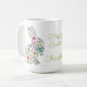 This Easter holiday ceramic mug features adorable spring rabbits of pink and blue wildflowers and leaves. Personalize with your choice of name or special text. Fun for Easter gift baskets and party favors.